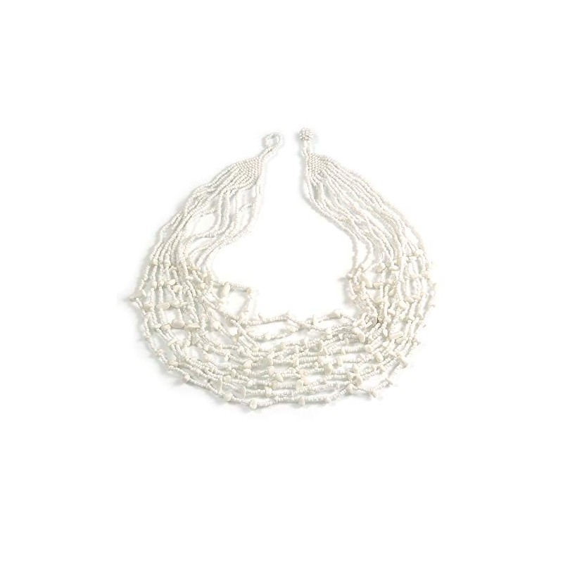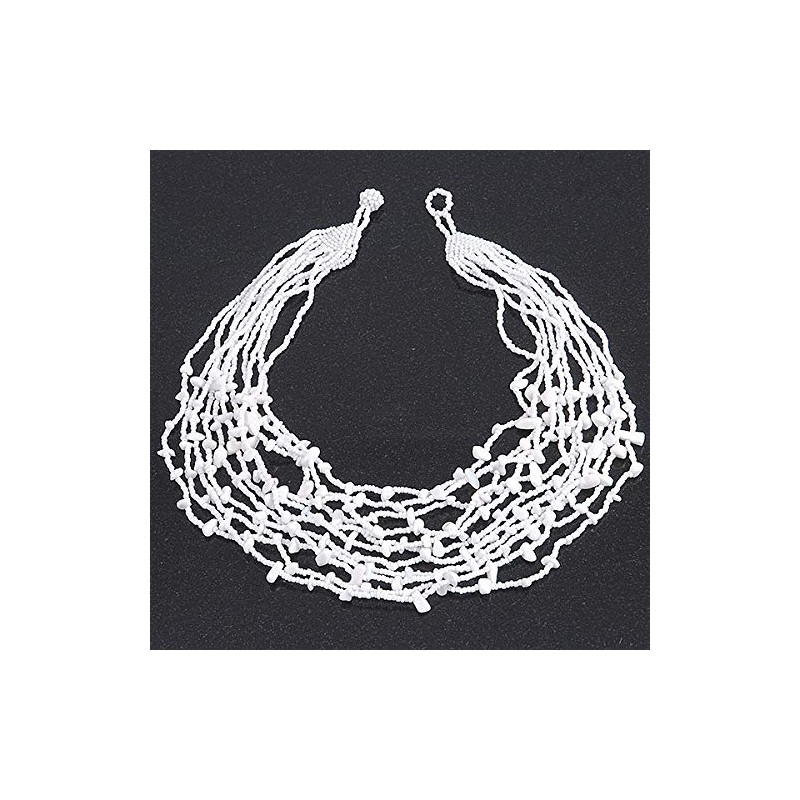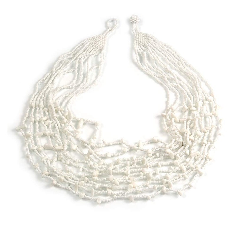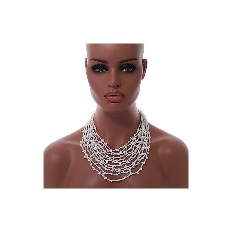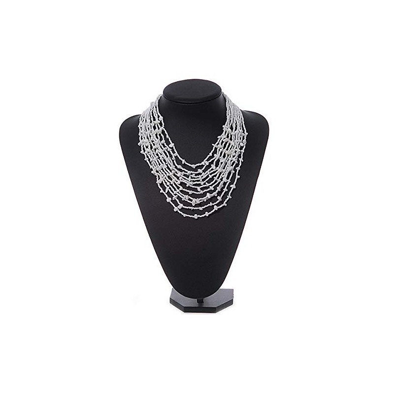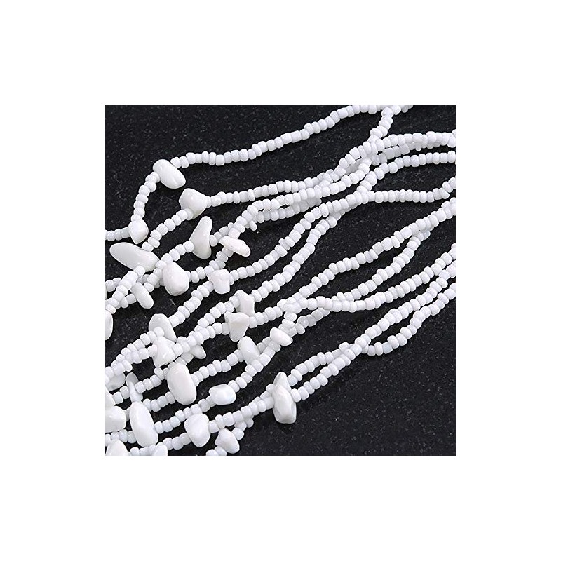 Avalaya Statement White Glass Bead/Semiprecious Stone Multistrand Necklace/60cm L