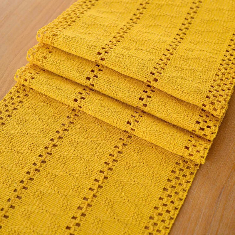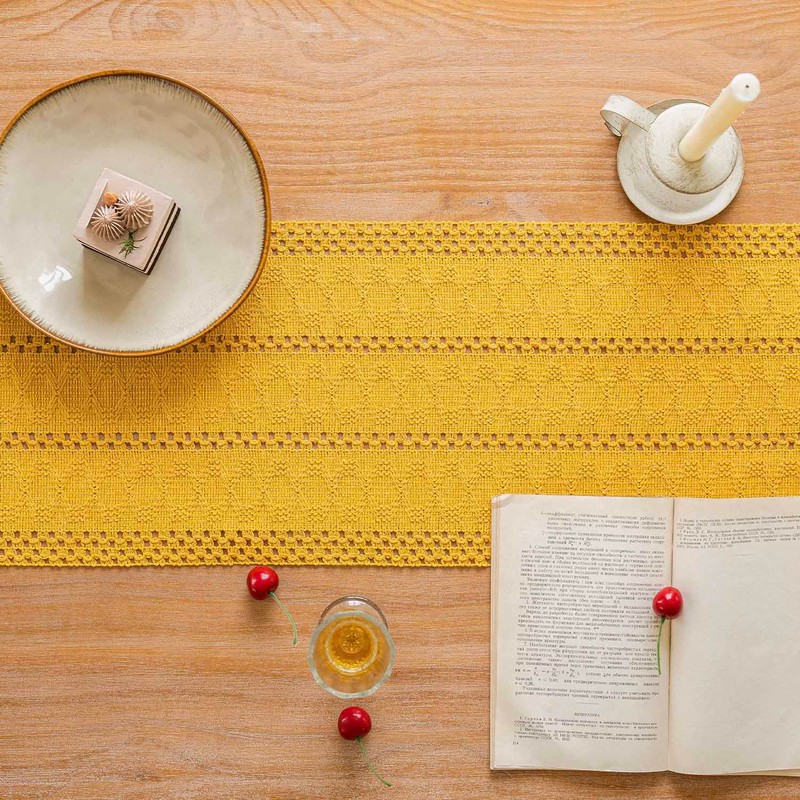Avalune Yellow Boho Table Runner Modern Farmhouse Small Slim Tablecloth Decor Macrame Cotton Linen Country House Style Rustic Autumn Table Runner for Kitchen Wedding Party 30 x 140 cm