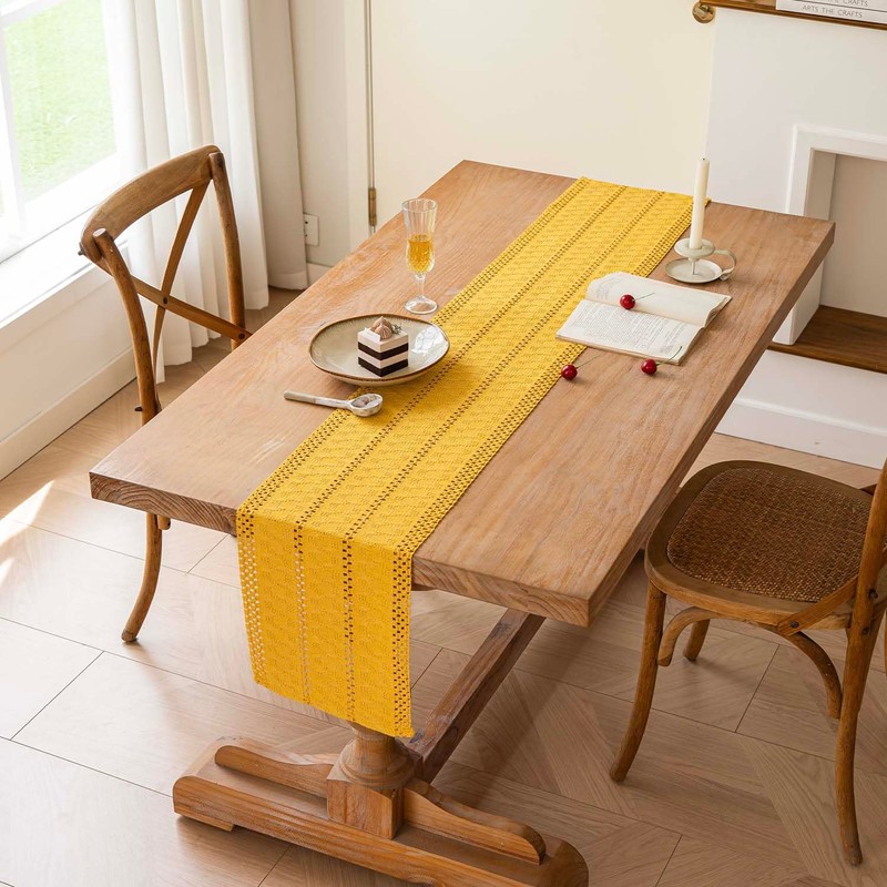 Avalune Yellow Boho Table Runner Modern Farmhouse Small Slim Tablecloth Decor...