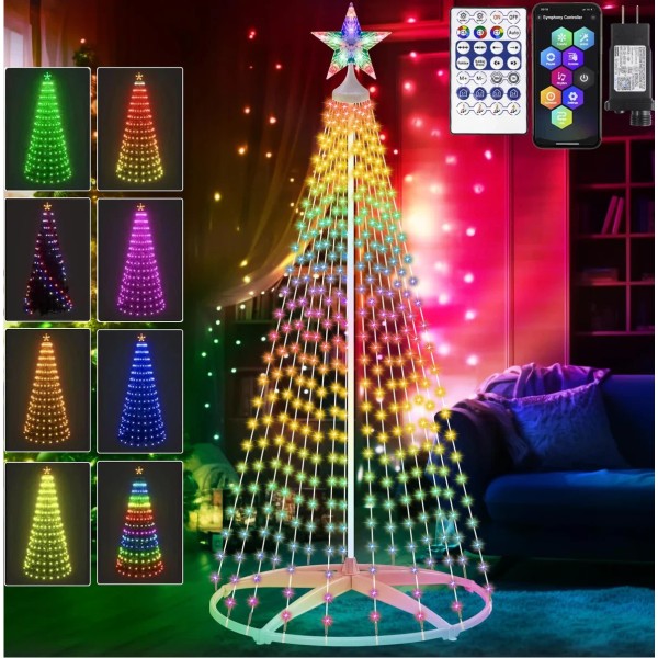 AVARTAR CONTROLS 8FT Smart LED lights Christmas Cone Tree with Star Topper Christmas Tree APP DIY
