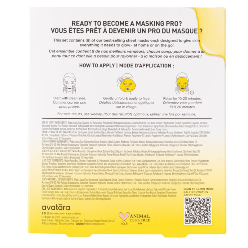 Avatara Avatara All-Stars 8-Pack Sheet Mask Set, Beauty and Skincare Face Masks Collection | Natural Extracts | Hydrating Skin Care Set, All Skin Types | Packaging May Vary