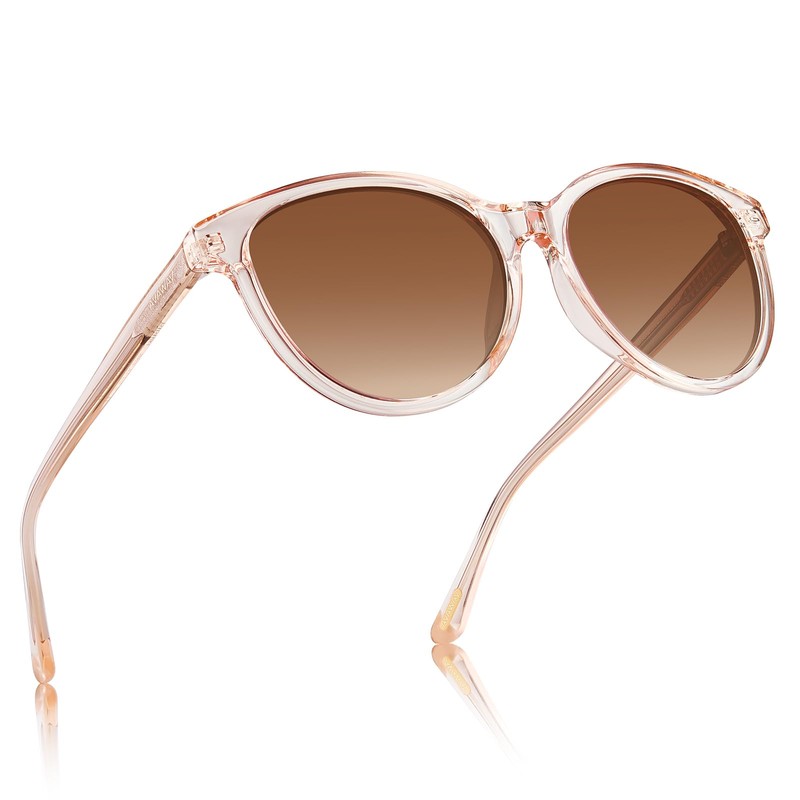- 【CLASSIC ROUND FRAME FOR EVERYONE】AVAWAY 2023 Trendy cute clear frame round sunglasses bring new styles. Clear Champagne Acetate frame combined with graduated brown lenses, which get lighter as you look down the lens. Brown gradient lenses amplify contrast, improving depth perception. It also adds warmth for a softer, more comfortable vision. Our Category 3 polarized sunnies suits most face shapes, so almost everyone can rock this effortless fashion accessory.