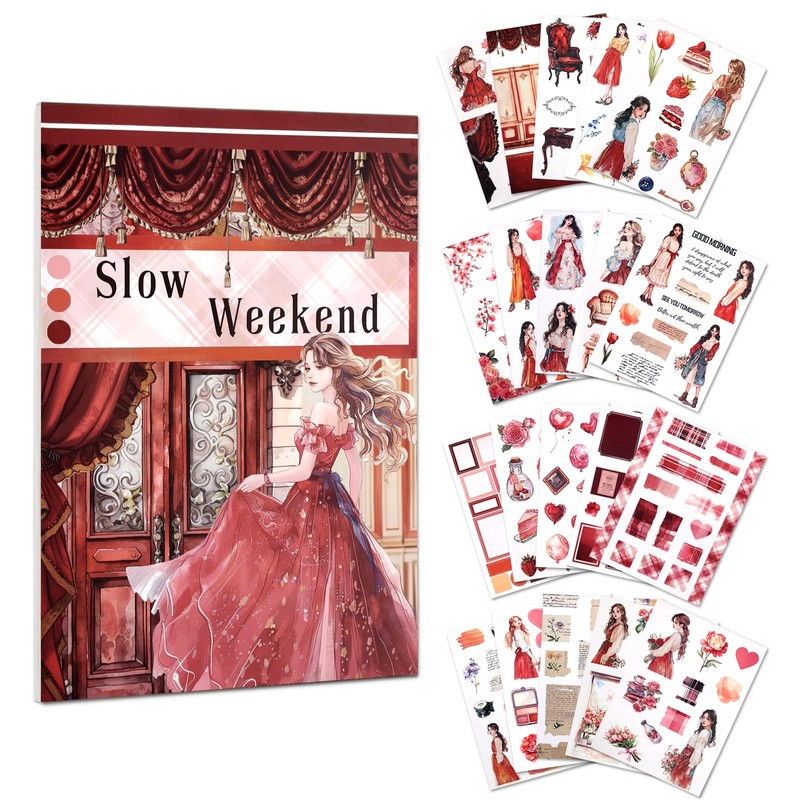 • 3. The scrapbook sticker book includes PET clear stickers, original white background stickers, both stick and adhere very well to the surfaces that they are placed on.
