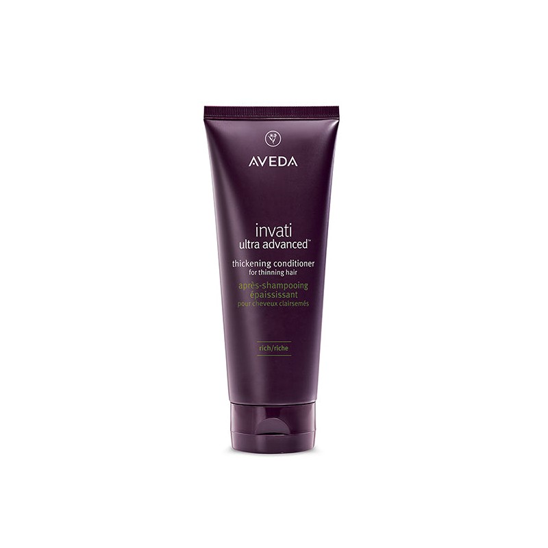 Reduce hair loss by 77%* with our latest advancement for thinning hair: the invati ultra advanced™ 4-step system. This deeply nourishing conditioner for thin hair is step two of your routine. The formula detangles, thickens and helps strengthen fragile, thinning hair — helping you keep the hair you have, longer. What are the features and benefits of Aveda Invati Ultra Advanced™ Thickening Conditioner Rich 200ml? Nourishes, strengthens and instantly thickens medium to thick thinning hair. Conditions and instantly thickens medium to thick hair with a botanical plumping blend, increasing diameter from root to tip. Free from Silicones, Parabens, Mineral Oils & Synthetic Fragrances. Dermatologist tested. 96% naturally derived**. Vegan. Leaping Bunny Approved. Aroma: Soothing Pure-Fume™ aroma with lavender, clary sage, Australian sandalwood, vanilla and other pure plant and flower essences. *Reduction in hair loss due to breakage, from repeat grooming test on tresses after use of Invati Ultra Advanced™ 4-step system of shampoo, conditioner, serum and leave-in.**Naturally derived per the ISO 16128 Standard. From plant, non-petroleum mineral sources, and/or water. Who is Aveda Invati Ultra Advanced™ Thickening Conditioner Rich 200ml best for? Aveda Invati Ultra Advanced™ Thickening Conditioner Rich 200ml is best for people with medium to thick thinning hair types and normal to dry scalp types.