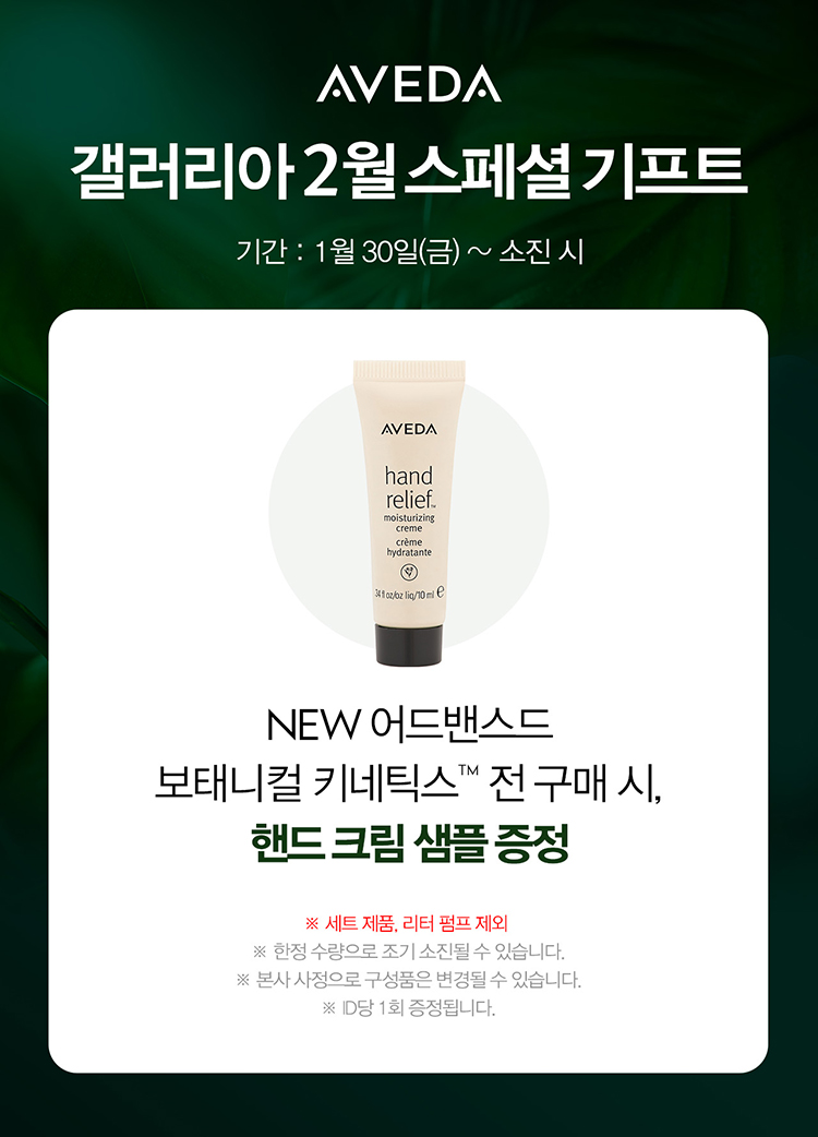 상품관련 상세문의처 : 갤러리아백화점(한화갤러리아㈜ 명품관) 아베다 T.02-3446-6930