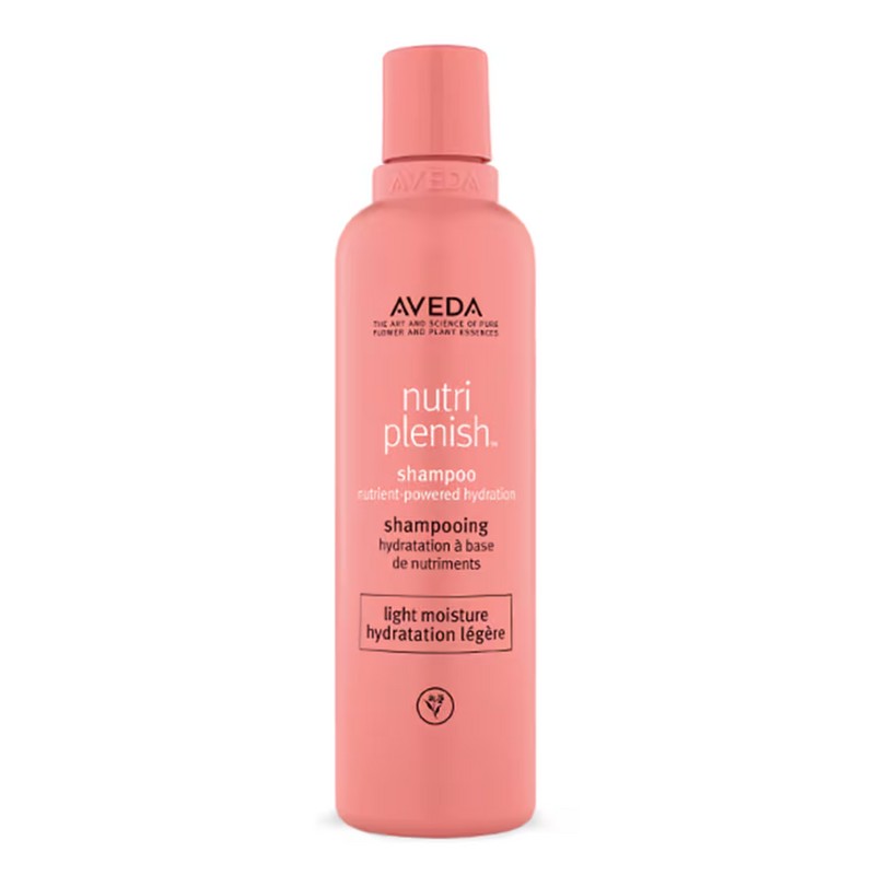 Aveda Nutriplenish™ Light Moisture Shampoo 250ml: This shampoo gently cleanses your hair while providing essential hydration. Its lightweight formula is enriched with a superfood complex, including organic pomegranate oil, coconut oil, and mango butter, which work together to nourish and replenish your hair, leaving it soft and shiny.
