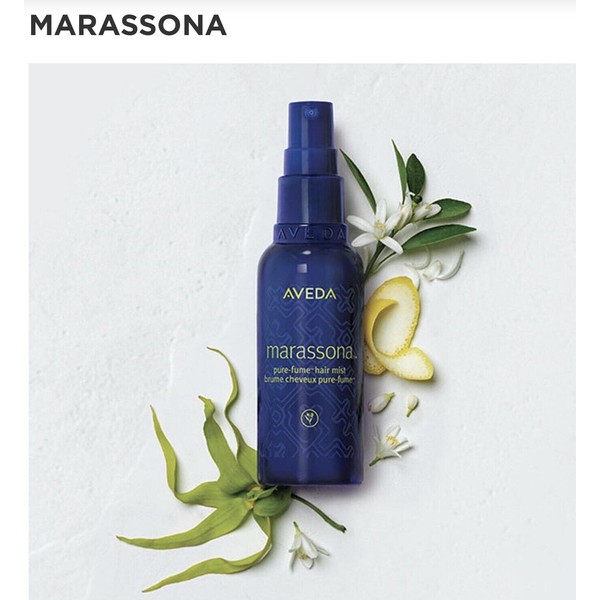 Description Aveda Marassona Pure-fume hair mist 2.5 fl oz. What it does: It envelops your hair with pure flower and plant aromas that last all day, and its fine mist won't collapse finished hair styles. A nourishing plant oil blend of certified organic sunflower and kukui seed oils also deliver softness and shine.