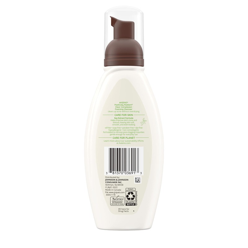 The Aveeno Clear Complexion Foaming Daily Facial Cleanser helps prevent breakouts and visibly improves skin tone and texture. This foam face wash removes dirt, oil, and bacteria and leaves skin feeling soft, smooth and even-looking. Ideal for breakout-prone skin, it contains salicylic acid acne medication, which treats and clears up blemishes. The mild formula with soy extracts is oil-free, soap-free, hypoallergenic, non-comedogenic, and gentle enough for everyday use and sensitive skin to help clear up acne without over-drying. Adult acne throwing you off balance? The Aveeno Clear Complexion collection is designed to clear skin without dulling your natural glow. Each exclusive soy-enriched product, with clinically proven acne medication, clears blemishes and helps reveal your skin's true radiance. Try other Aveeno Clear Complexion products or explore other Aveeno skincare collections for a skin solution that's clearly you. Aveeno has been dermatologist recommended for over 65 years.