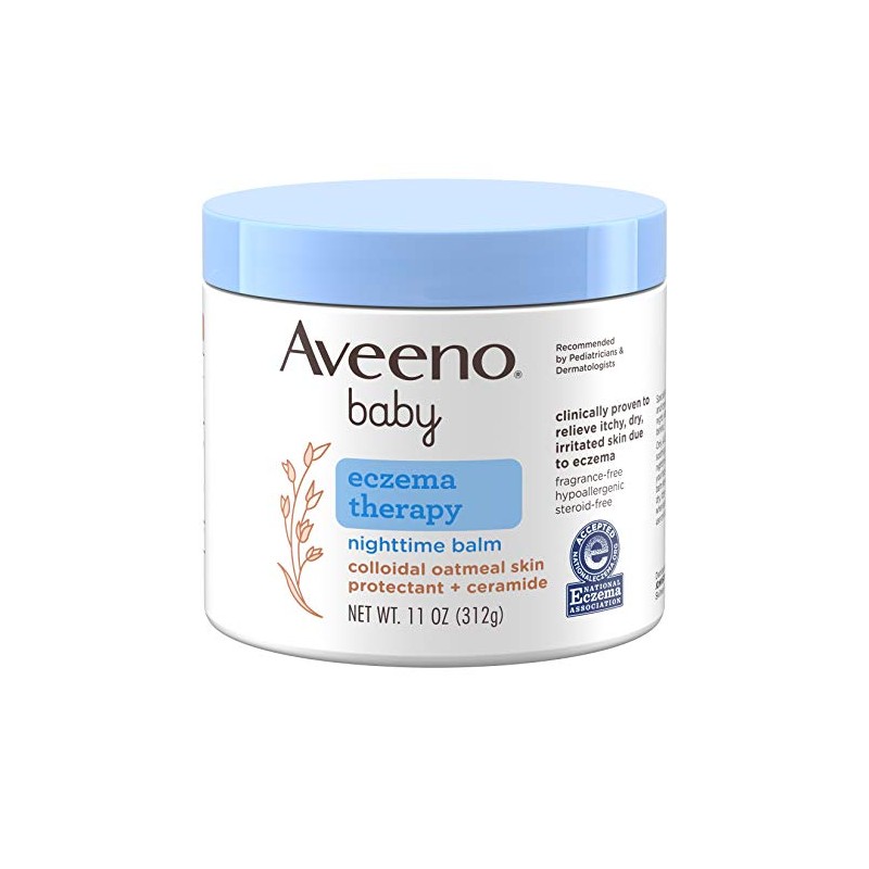 - 11-ounces of Aveeno Baby Eczema Therapy Nighttime Relief Balm designed to help soothe your baby's dry, itchy & sensitive skin due to eczema without the greasy feeling
