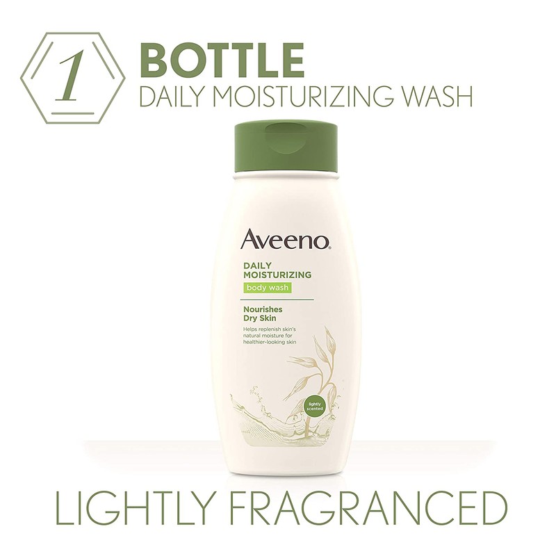 - 18-fluid ounce bottle of Aveeno Daily Moisturizing Body Wash with Nourishing Oat to help replenish skin's natural moisture
