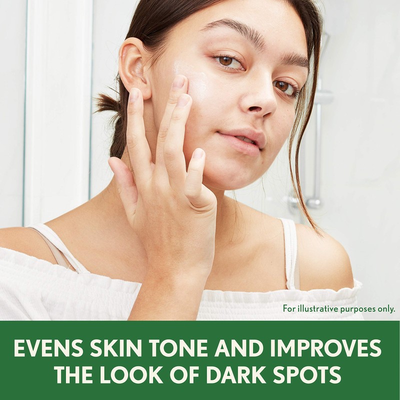 - Daily face moisturizer is oil-free and powered by Total Soy Complex, which helps to even skin tone and texture, fight early signs of skin aging, and improve the appearance of skin dullness and dark spots to leave skin glowing