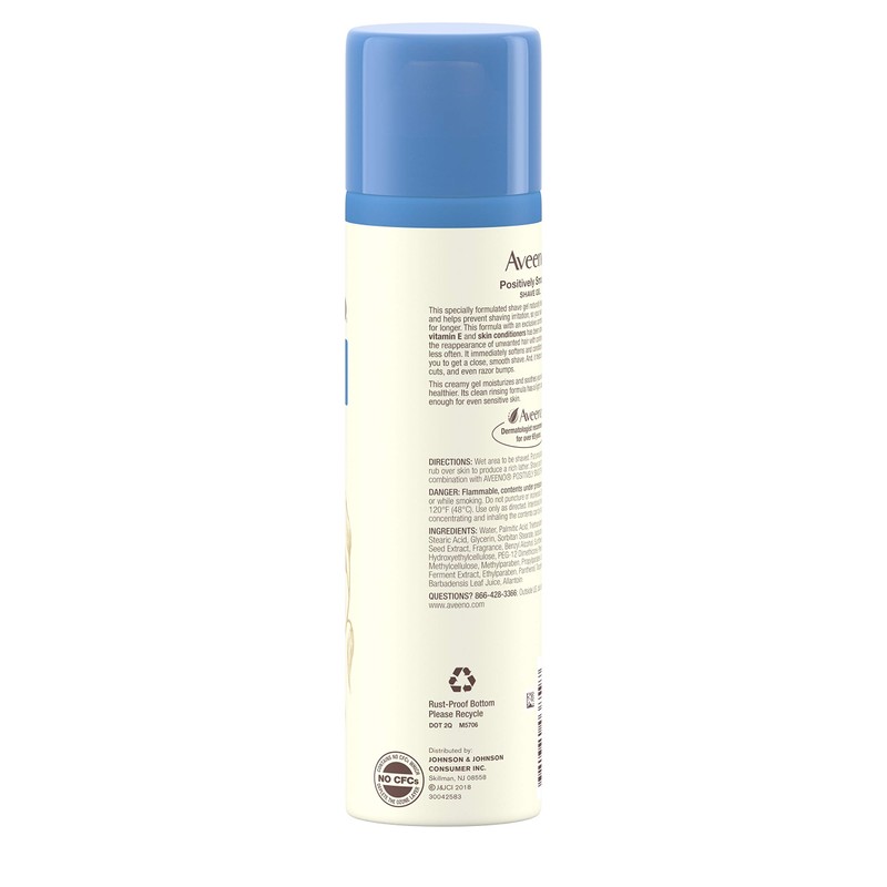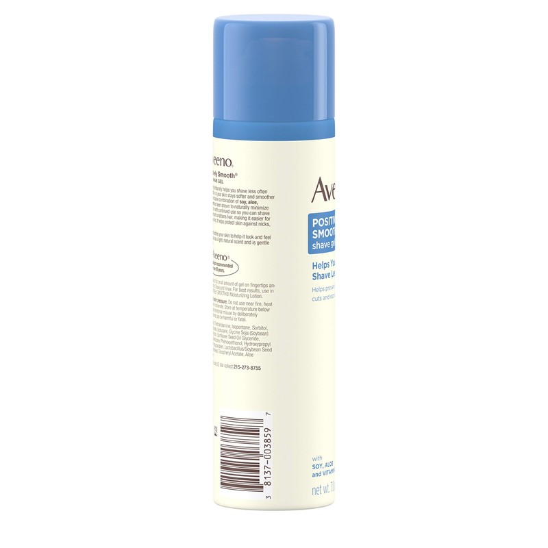 Aveeno Positively Smooth Moisturizing Shave Gel will help naturally minimize the appearance of unwanted hair with continued use. Gentle enough for sensitive skin, this formula contains soy, aloe, Vitamin E and conditioners helps you shave less often with continued use and helps prevent nicks, cuts, and razor bumps. The moisturizing ingredients and vitamins help soften and condition hair, making it easier to get a close, smooth shave while helping prevent shaving irritation. This creamy shave gel rinses clean and has a light, natural scent.