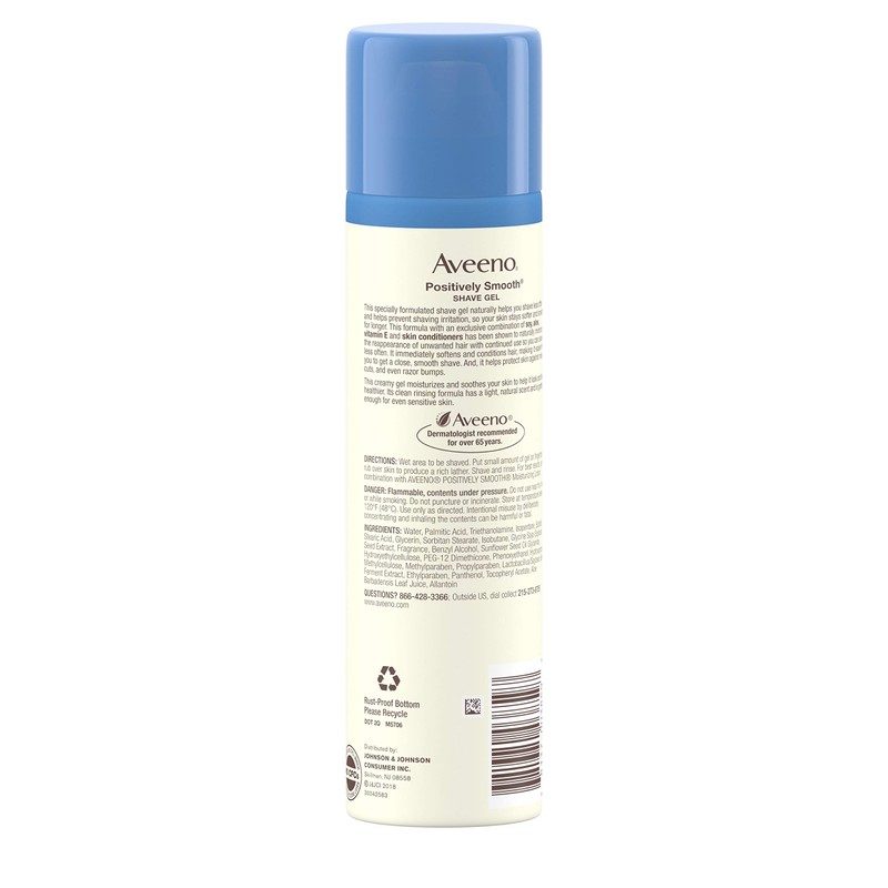 - 7-ounce canister of Aveeno Positively Smooth Moisturizing Shave Gel to help naturally minimize the appearance of unwanted hair with continued use