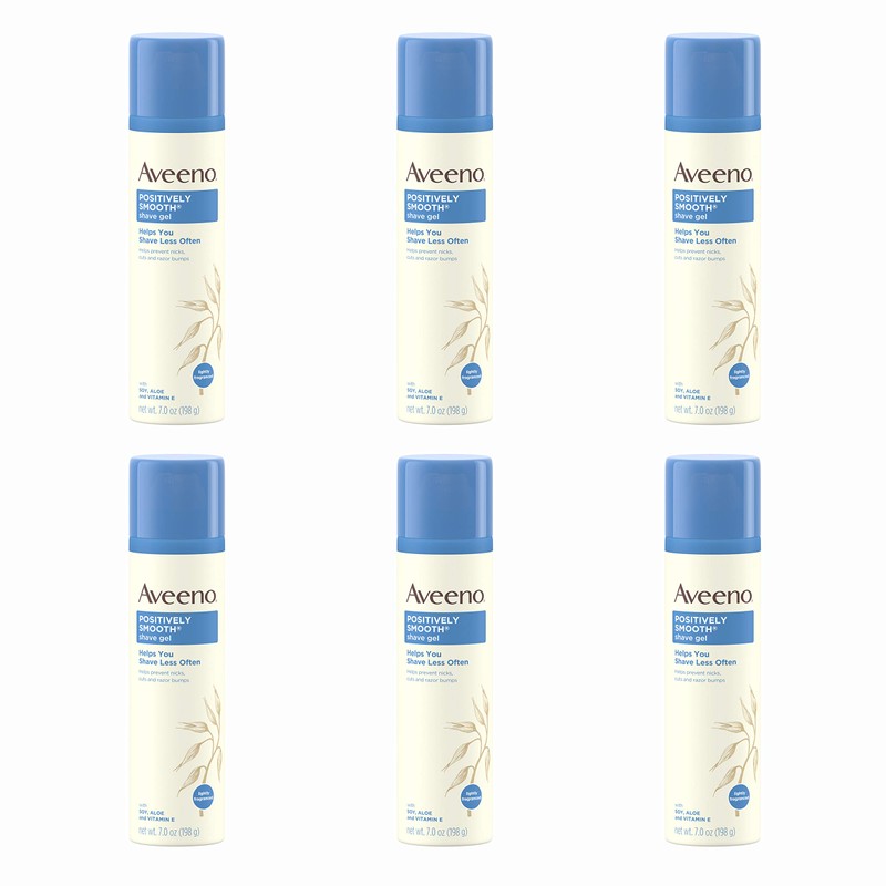 Aveeno Positively Smooth Moisturizing Shave Gel with Soy, Aloe, and Vitamin E to help Prevent Nicks, Cuts and Razor Bumps, Lightly Fragranced, Pack of 6, 7 oz each