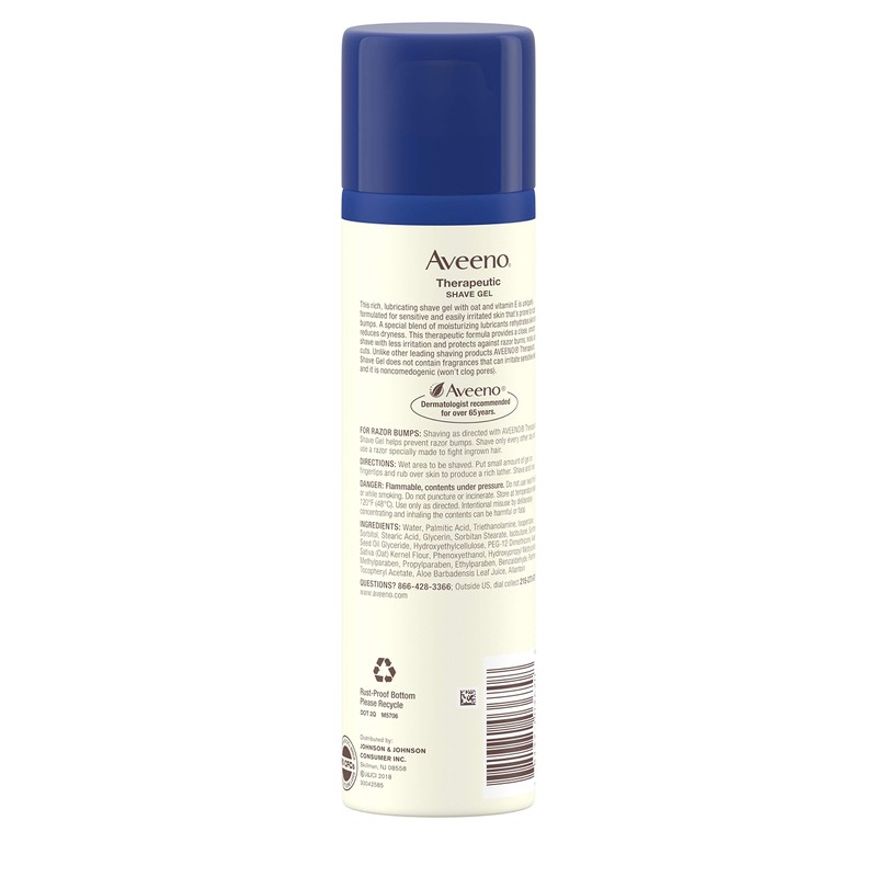 - 7-ounce canister Aveeno Therapeutic Shave Gel with Oat and Vitamin E to help hydrate and helps protect skin against razor bumps during shaving