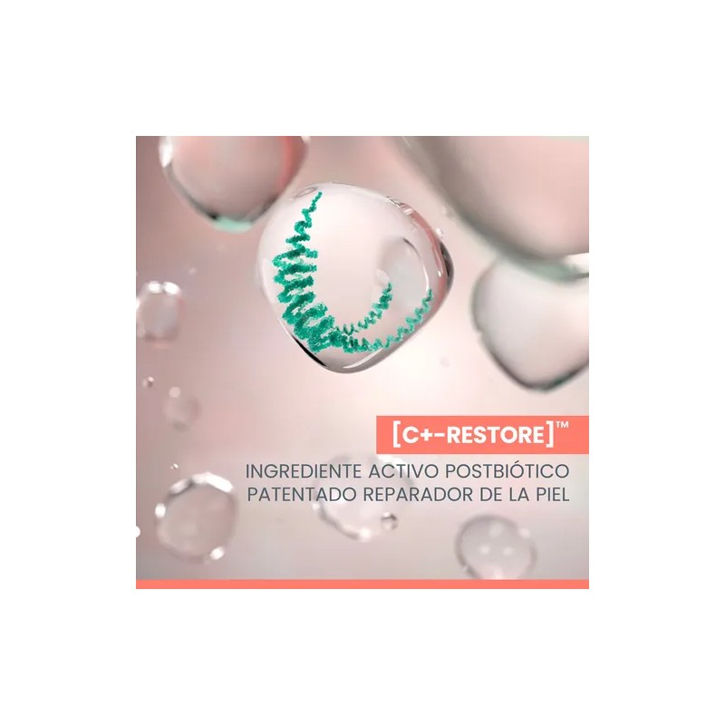 - C+ RESTORE™: Ingrediente activo post-biótico patentado que acelera la reparación de la piel.