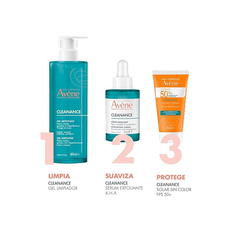 Descubre el gel limpiador facial Cleanance de Avène diseñado para brindar cuidado y equilibrio a las pieles grasas con tendencia a imperfecciones, destacado por su fórmula libre de jabón, ofrece un PH fisiológico que garantiza una limpieza suave y tolerante sin comprometer el delicado equilibrio de la piel. El gel limpiador de Avène es adecuado para los usuarios de lentes de contacto. Su acción limpiadora matificante, potenciada por el innovador componente Comedoclastin™ extraído de las semillas del cardo mariano, ingrediente de origen vegetal que ha demostrado propiedades únicas para reducir las imperfecciones cutáneas y devolverle a tu piel un aspecto más saludable y el bienestar que te brinda el agua termal de Avene, calmante y antiirritante para la piel. El gel limpiador te ayudará a reducir las imperfecciones, los puntos negros existentes, previene la aparición de otros nuevos y regula la hiperproducción de sebo. Con el gel limpiador Cleanance, disfrutarás de una experiencia de limpieza profunda y purificante, eliminando las impurezas y el exceso de grasa de forma efectiva, sin agredir tu piel. Además, su delicada fórmula no resecará tu cutis, dejándolo suave, fresco y revitalizado después de cada uso.