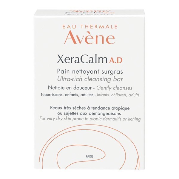 Product Claims: Avène XeraCalm A.D Ultra-Rich Cleansing Bar soothes and nourishes dry, eczema-prone skin* whilst protecting it from the drying effects of water. *Cutaneous and ocular tolerance and efficacy study of the investigational product bar soap performed in at least 40 subjects during 3 weeks under dermatological, ophthalmological and paediatrician control with an associated soap test on hands during 5 days, on 43 subjects for 21 days.