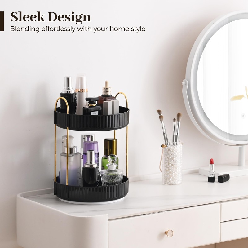 Aveniee Aveniee 360 Rotating Makeup Organizer for Vanity, Skincare & Perfume, Large Capacity Bathroom Countertop Storage, 2 Tiered Black Cosmetics Lipstick & Skin Care Holder for Dresser