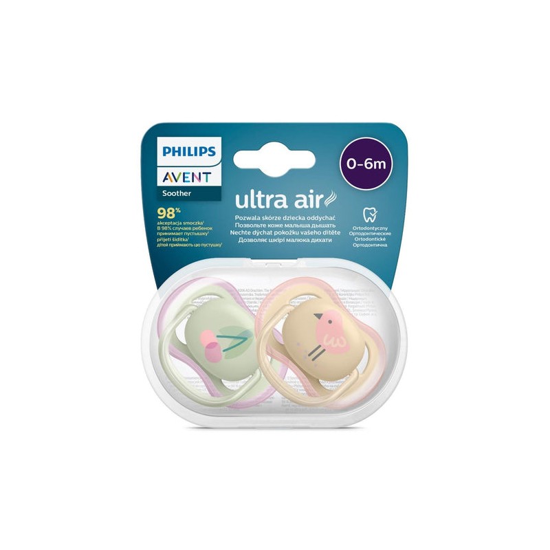 Avent Ultra Air Soother 0-6 Months Deco 2 Pack (Colours and Designs may vary)