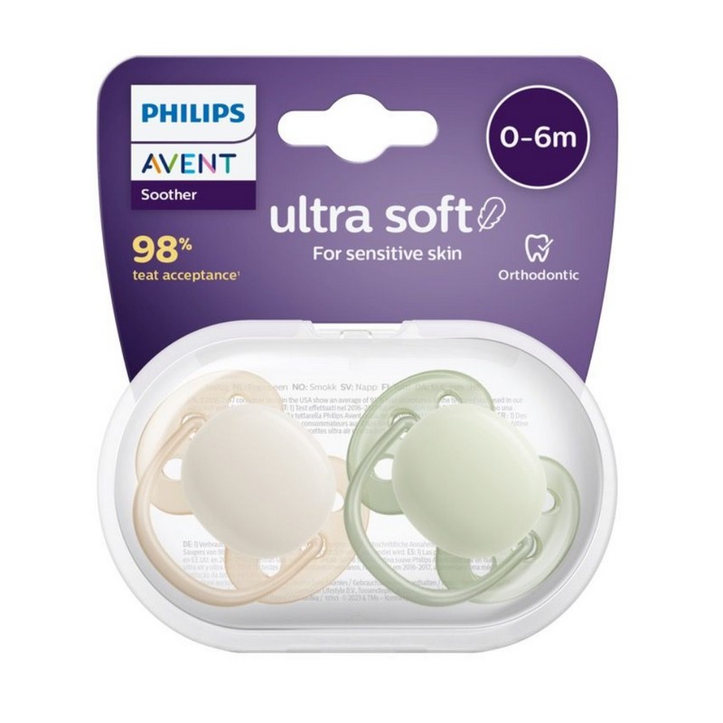 Our softest soother for your baby’s sensitive skin Take care of sensitive skin with the Philips Avent ultra soft pacifier. Our super soft* and flexible shield follows the curves of your baby's cheeks, leaving fewer skin marks and less skin irritation