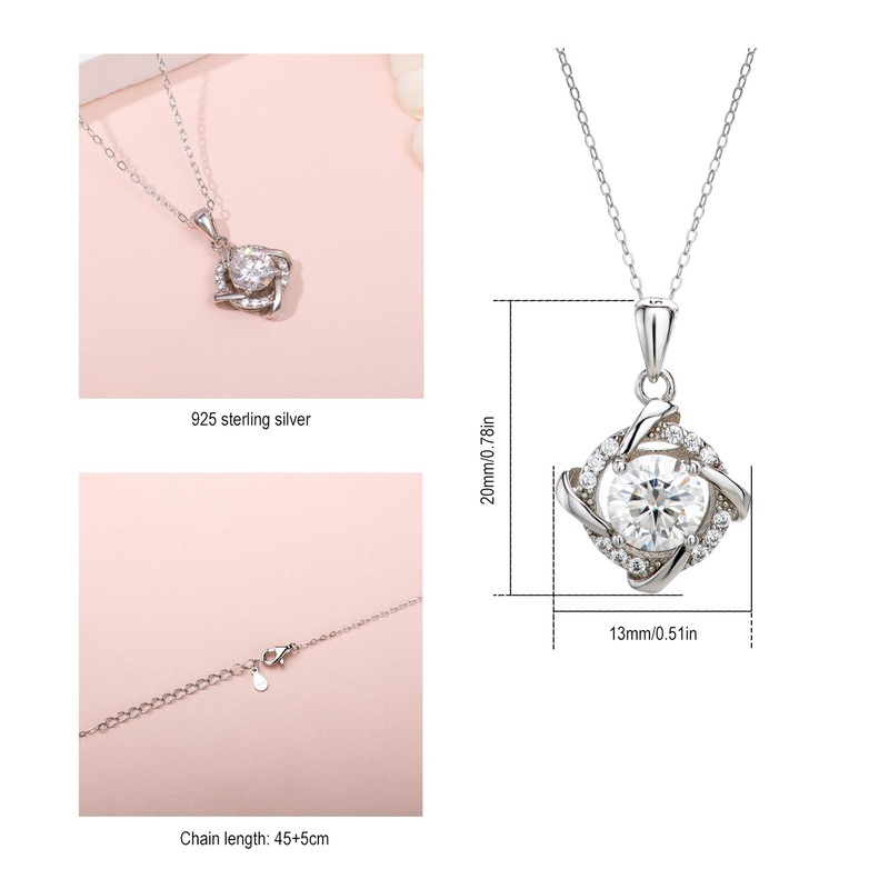 Aventia 1 Carat Moissanite 925 Silver Necklace with an Excellent Grade