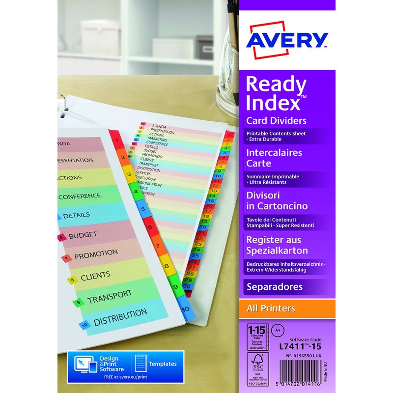 Avery 1 to 15 Ready Index Dividers - Assorted Colour