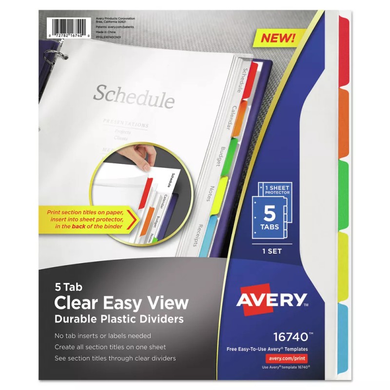 Avery 16740 11 x 8.5 Easy View Plastic Dividers - Clear (5-Pieces/Set) New