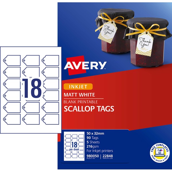 - Avery 22848 Scalloped Printable Tags with String in white are perfect for craft projects or as gift tags
