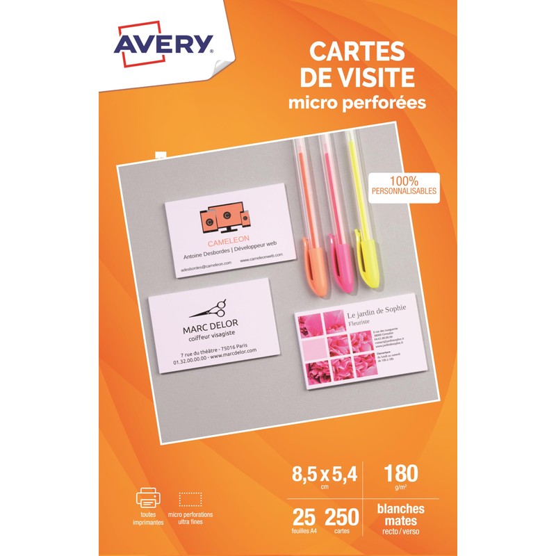 Avery 250 Business Cards Micro-Perforated 85x54 mm 185 g/m²