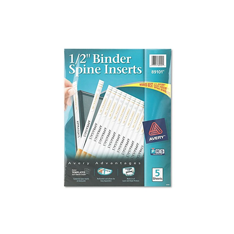 Avery 89101 Binder Spine Inserts, 1/2-Inch Spine Width, 16 Inserts/Sheet, 5 Sheets/Pack