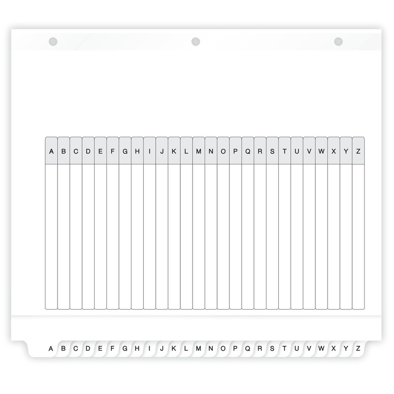 - White alphabet divider tabs are preprinted and don't require labels or inserts
