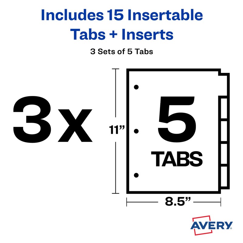 Avery Big Tab Insertable de plástico Separadores, 3 juegos de 5 pestañas