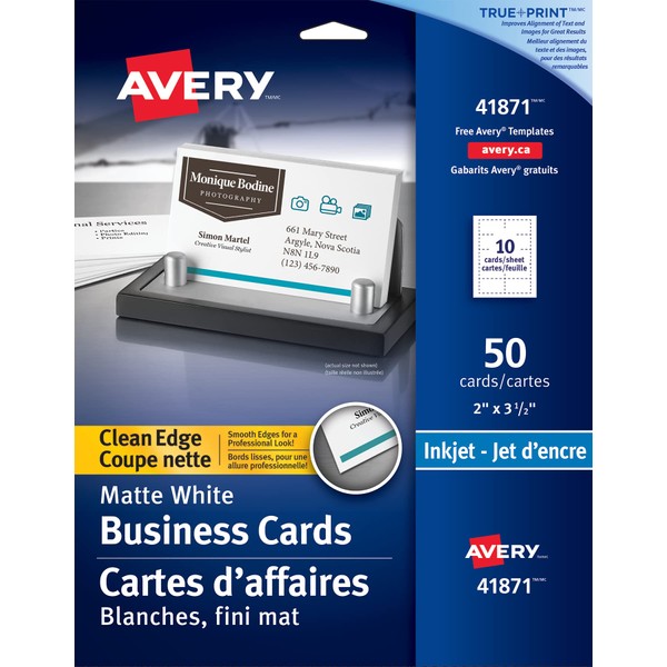 Avery Business Cards, 2" x 3.5" Cards, Clean Edge, White, Matte, for Inkjet Printers, 50 Cards, (41871)
