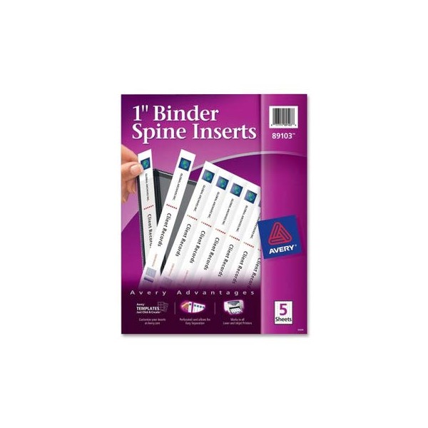 Create professional-looking binder spines using your inkjet or laser printer. Micro-perforated cardstock for easy separation of each spine. Firm cardstock makes it easier to insert each spine into a binder. Spine Width: 1amp;quot; Colors: White Machine Compatibility: Inkjet Printers Laser Printers Quantity: 40 per pack.