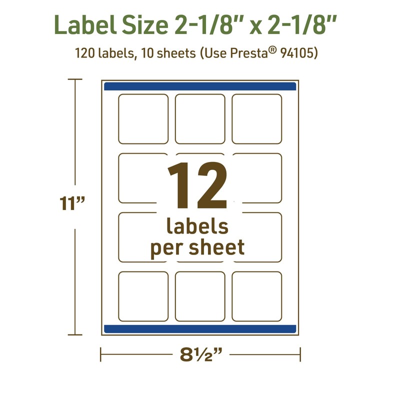 Avery Dissolvable Square Labels, Sure Feed Technology, 2-1/8" x 2-1/8", Matte White, Print-to-The-Edge, Laser/Inkjet Printable, 120 Labels Total