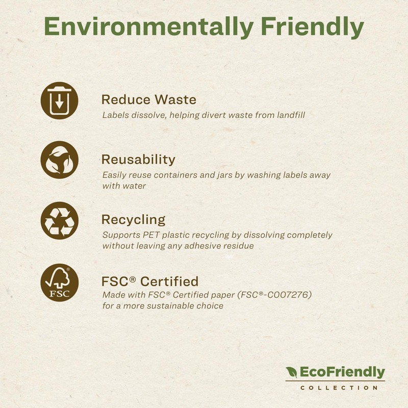 - Choose an eco-friendly solution with dissolvable labels that break down in water, making it easy to reuse containers while reducing waste in landfills