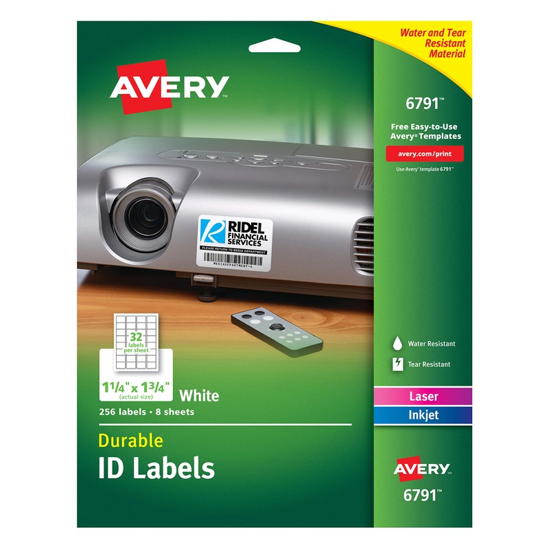 Avery Durable ID Labels, Permanent Adhesive, 1-1/4" x 1-3/4", Pack of 256 (6791)