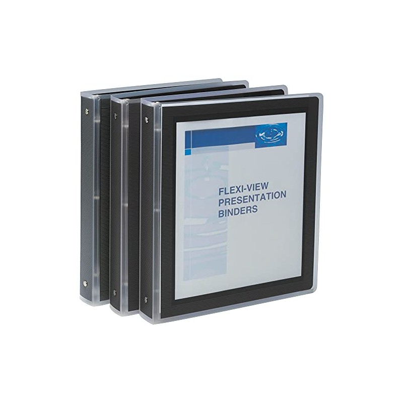 Avery Flexi-View 3 Ring Binder, 1 Inch Round Rings, 3 Black Binders (17686)