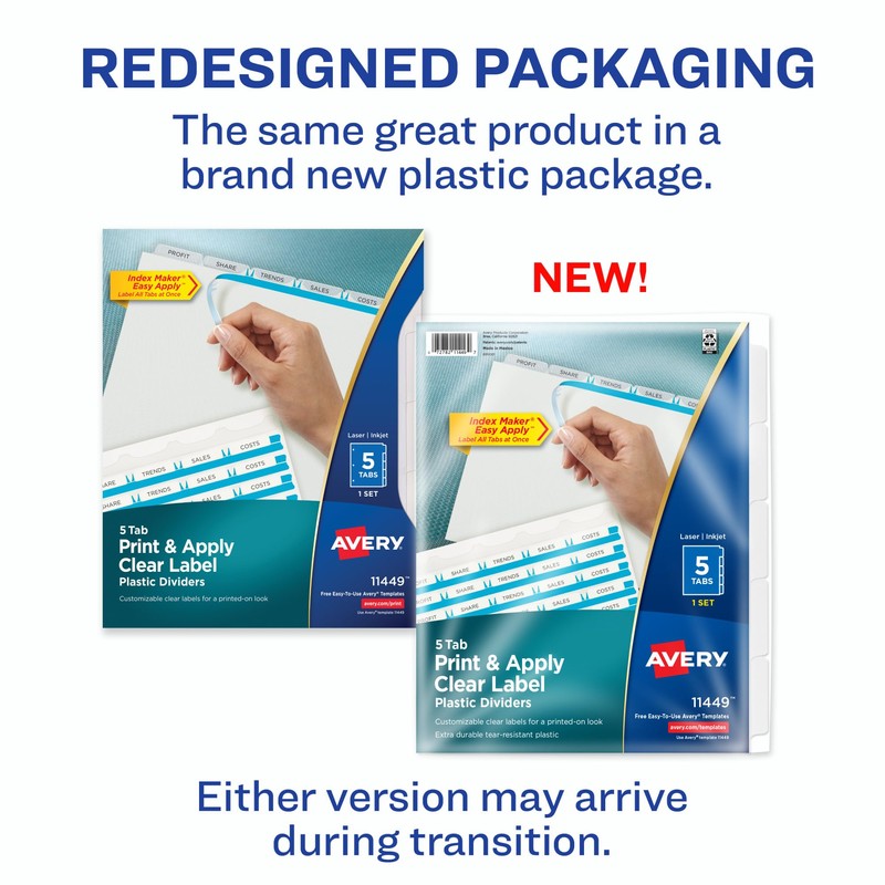 Avery Index Maker Label Dividers, Clear, 5-Tab Set, 1 Set (11449)