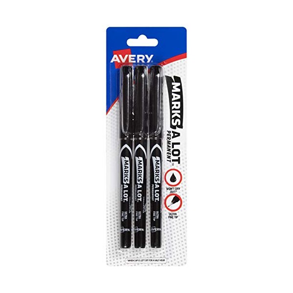 Avery Marks-A-Lot Ultra Fine Permanent Markers, 3 Black Markers, 1 Pack (09230)