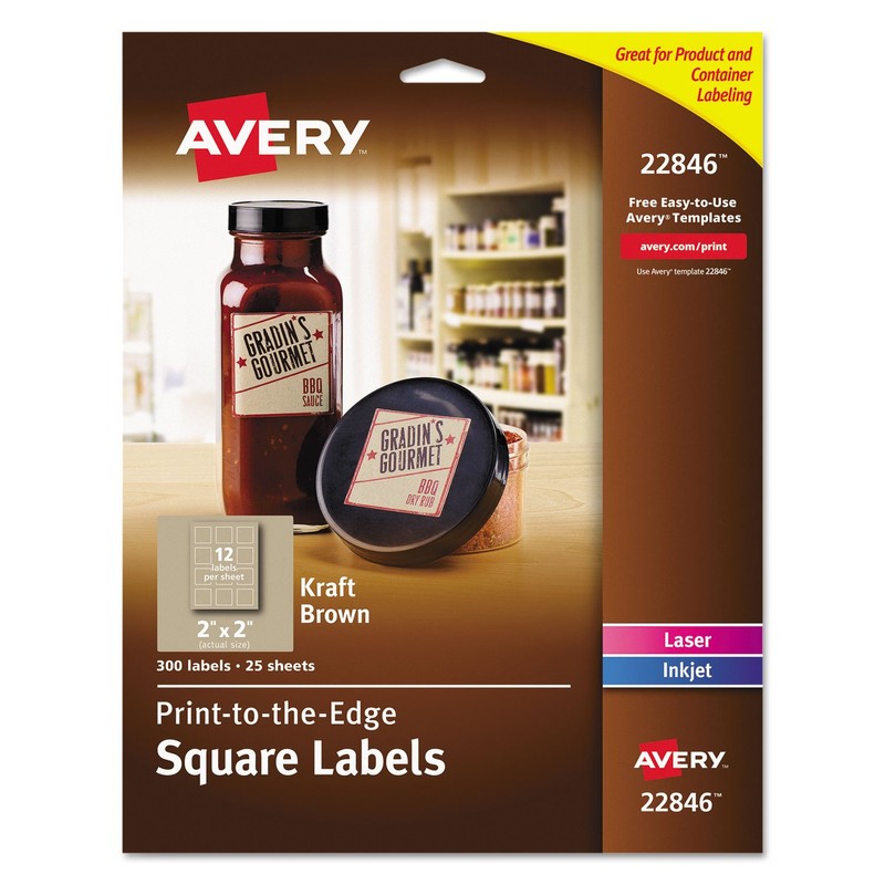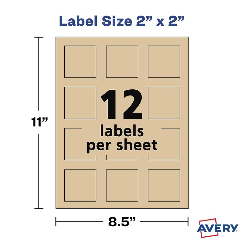 Avery Printable Blank Square Labels, 2" x 2", Kraft Brown, 300 Customizable Labels (22846)