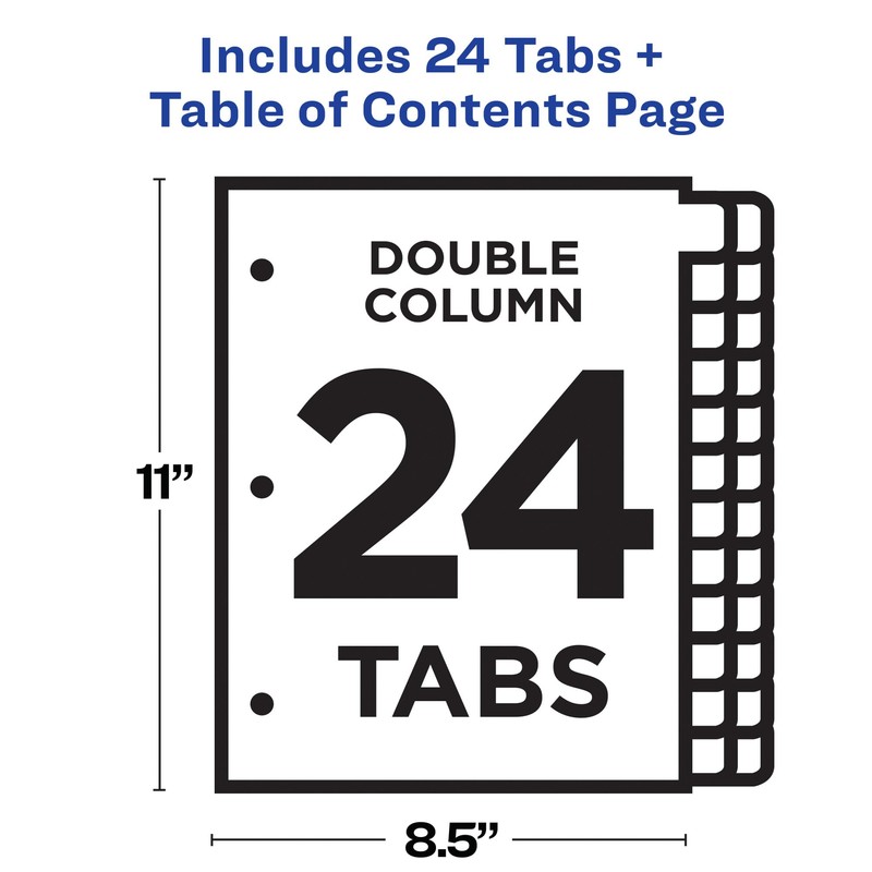 Avery Ready Index Double Column Table of Content Dividers for 3 Ring Binders, 24 Tabs, Multi-Colour, 1 Set, (11321)