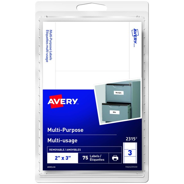 Avery Removable Multi-Use White Labels, 3" X 2", Rectangle, 75 Labels Per Pack (2315)