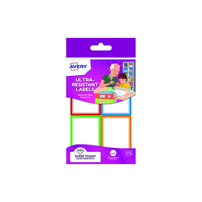 Avery Resistant Rectangular Labels, 44 x 64 mm, 16 Labels Per Pack, White (with Coloured Patterned Edges)