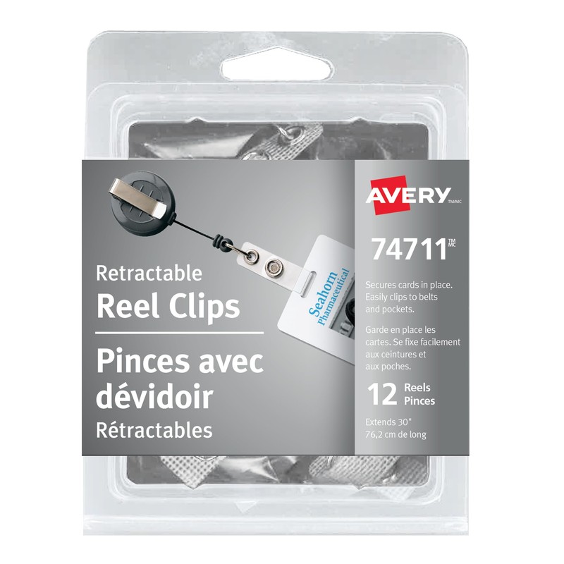 - Avery AVE74711 Clip on ID Reel, Retractable, 30" Cord, 12/PK