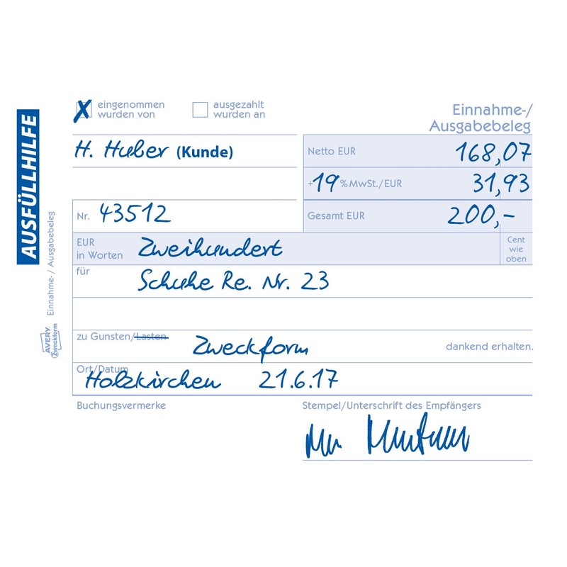 - Income/expense document in DIN A6 landscape format for your accounting and tax