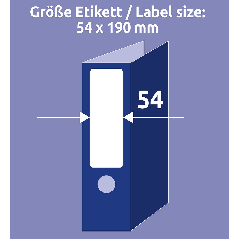 • 50 high-quality, white folder spines, insert labels in short format 54 x 190 mm for wide folders - easy, quick removal of individual spine labels thanks to micro-perforation