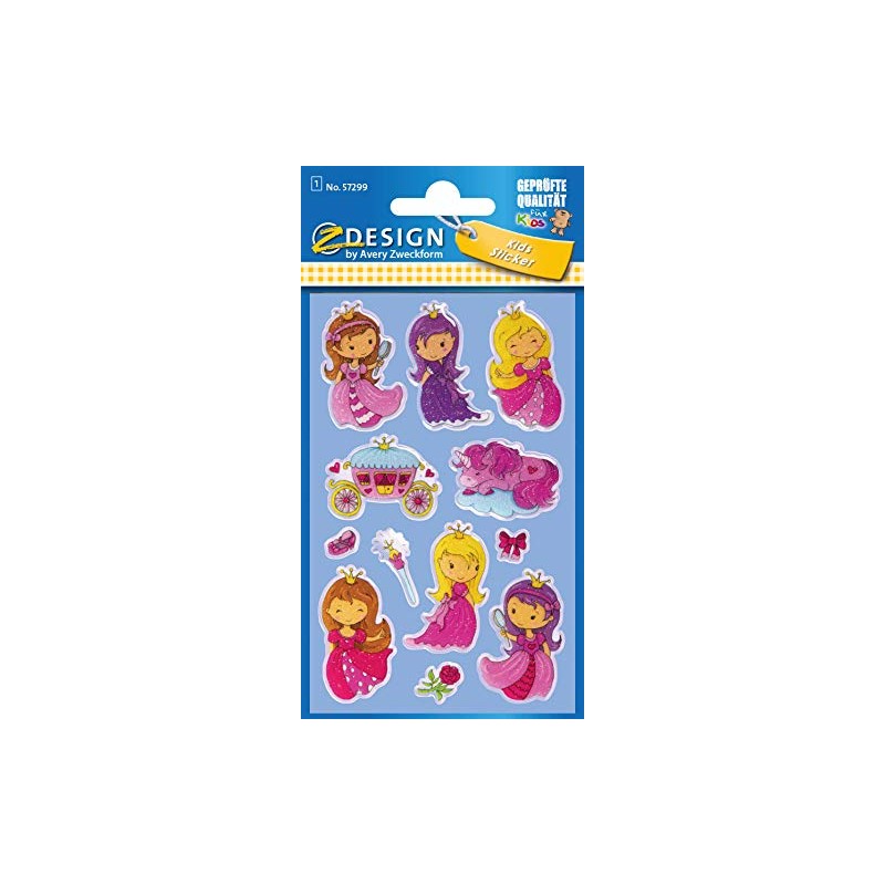 Avery Zweckform Pack of 12 Glossy Stickers (Princess Stickers in 3D Effect, Children's Stickers for Playing, Crafts Collecting) Item 57299