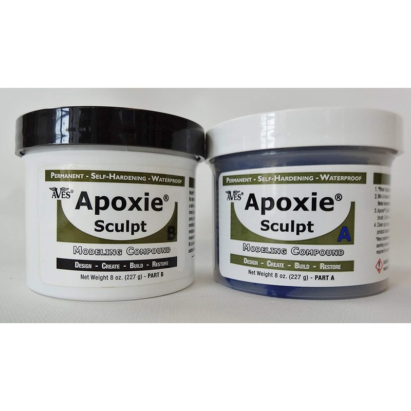 "Apoxie Sculpt combines the features and benefits of sculpting clay with the adhesive power of epoxy! This modeling clay's smooth, putty-like consistency is easy to mix & use. Self-hardens (No Baking); cures hard in 24 hrs., semi-gloss finish. Adheres to nearly any surface. Great for sculpting, embellishing, bonding and filling most anything. Accepts paints, stains, mica powders & more for a variety of finishing options. Be Creative with Your Own Uses! Available in 12 colors you can mix & match!."
